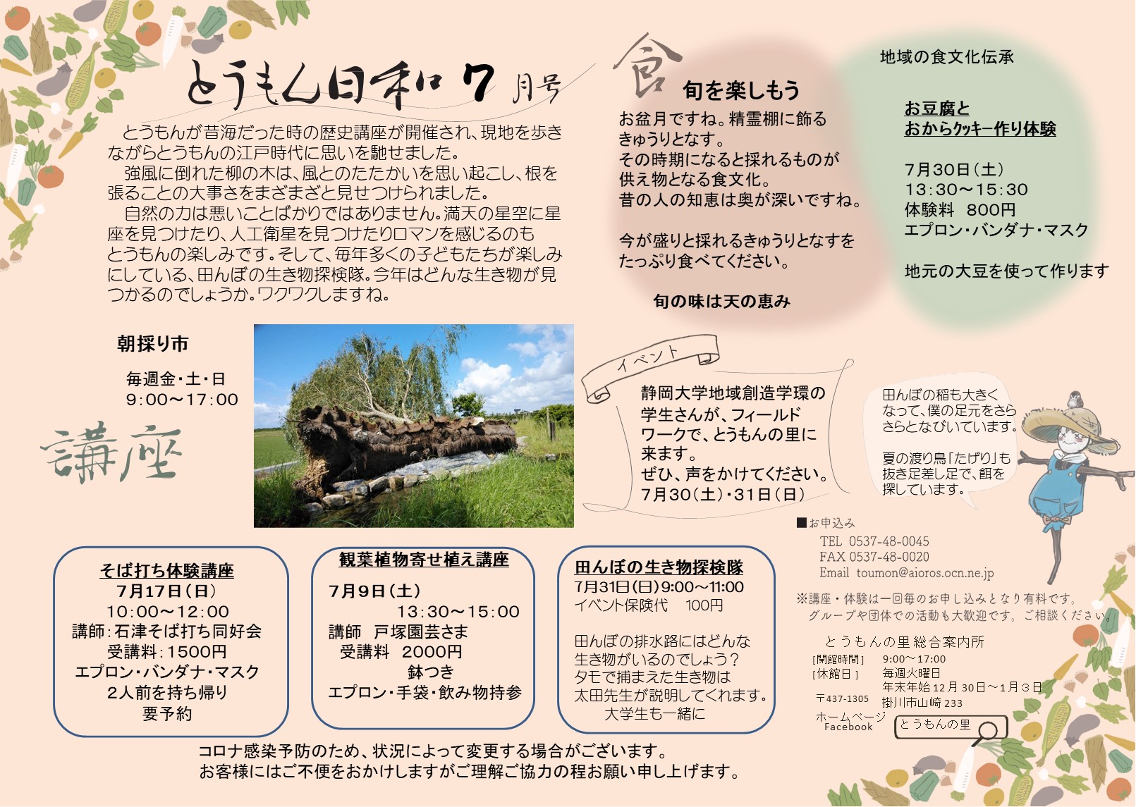自然の力は悪いことばかりではありません。満天の星空に星座を見つけたり、人工衛星を見つけたりロマンを感じるのも、とうもんの楽しみです。そして、毎年多くの子どもたちが楽しみにしている、田んぼの生き物探検隊。今年はどんな生き物が見つかるのでしょうか。ワクワクしますね。