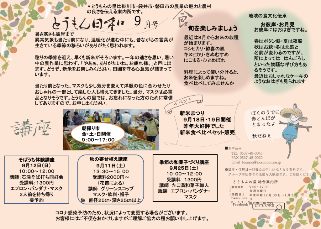 おしゃれの一部として楽しむ人も増えてきました。当分、マスクは必需品となりそうです。とうもんの里では、お忘れになった方のために常備してありますので、お申し出ください。